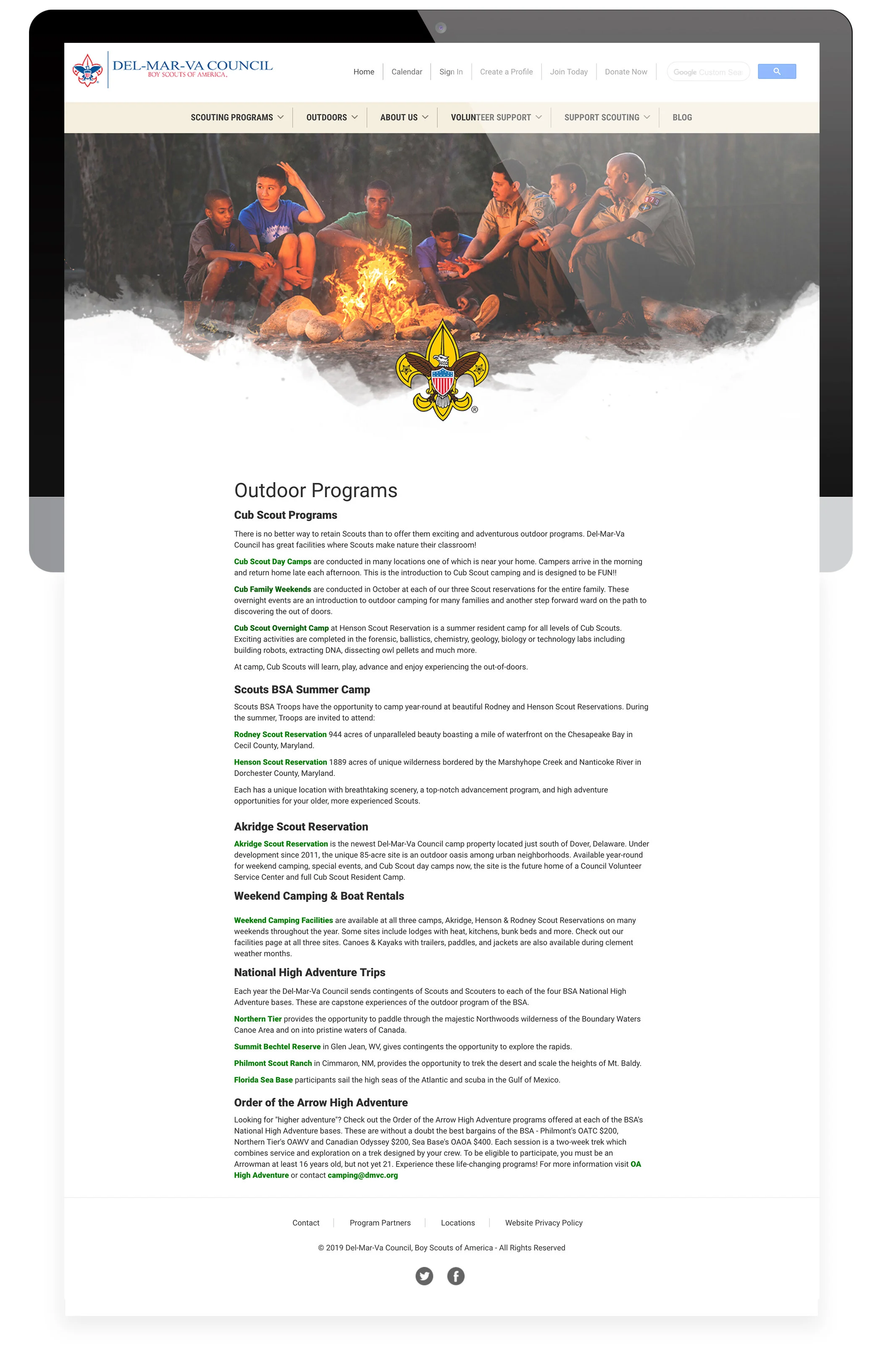 I designed this website for the Boy Scouts of Delaware, Maryland and Virginia chapters. The website serves as both a resource and recruiting tool for members.